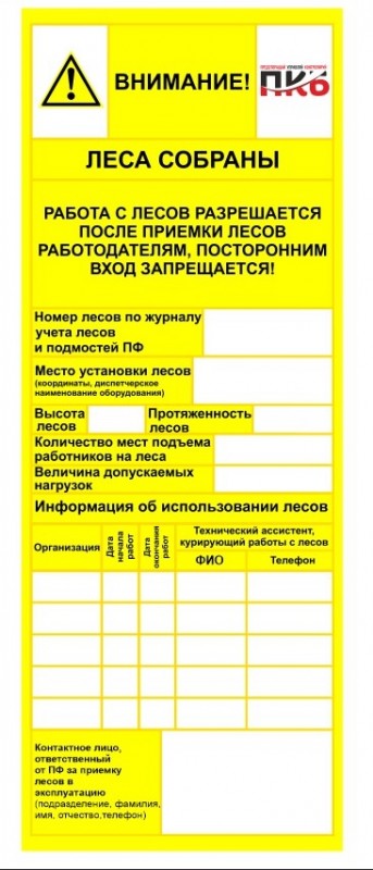 Вставка в держатель лесов для работы на высоте 210х85 мм, русифицированные, сделаны из пластика 0,3 мм толщиной, покрыты либо матовой, либо глянцевой ламинацией. Благодаря ламинации бирка перезаписываемая, т.е. многоразового использования, наносить и стирать текст можно не менее 6 раз. Текст можно наносить перманентным маркером, стирается техническим спиртом, либо растворителем Р-647. Размеры изготавливаем различные, по запросу.